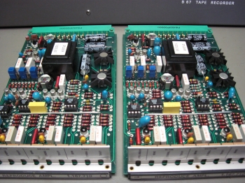 Die B67 ist bezüglich der Laufwerksmechanik und der Laufwerkslogik der A700 sehr ähnlich. Die Baugruppen der Signalverarbeitung sind im unteren Bereich in Steckkartentechnik realisiert.