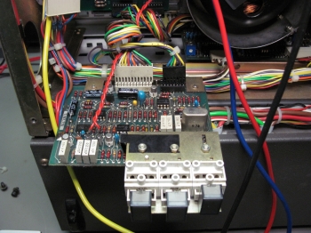Das gesamte Gebilde wird an den Originalanschraubpunkten der Maschine befestigt und mit den XLR-Ein- und -ausgängen verbunden.