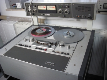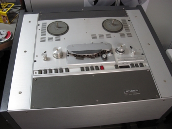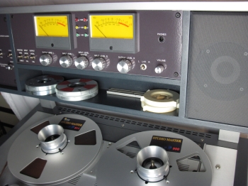 Bei der Version in der fahrbaren Konsole waren die VU-Meter, der Monitorlautsprecher und die Bedienelemente in einer darüber montierten Brücke untergebracht.